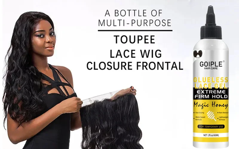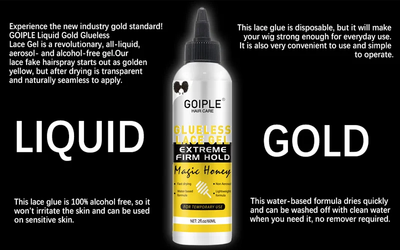 GOIPLE 2fl.oz Washable Glue Less Lace Gel Extreme Firm Hold Fast Drying Natural Wig Formula Adhesive for Temporary Use